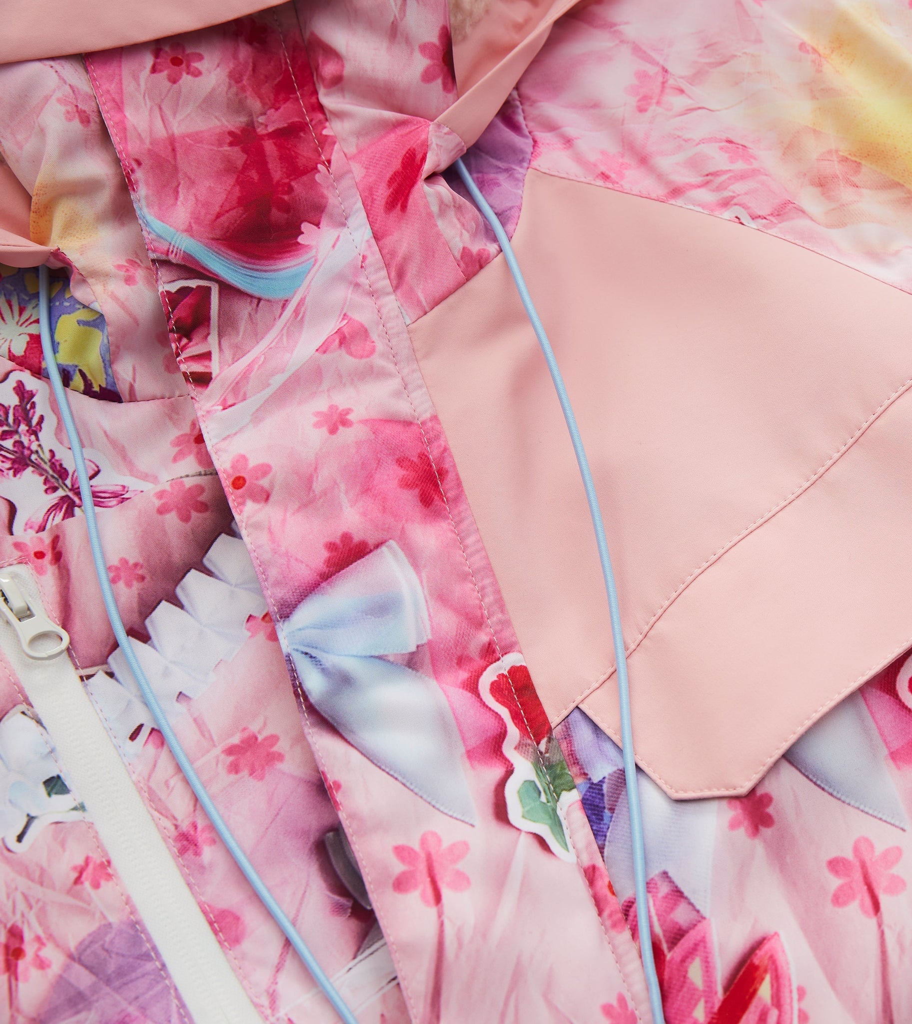 This item is made of hand drawing and collage prints, classic hood, front two-way zip and concealed front fastening, two front flap pockets, drawstring hem. Made in love.