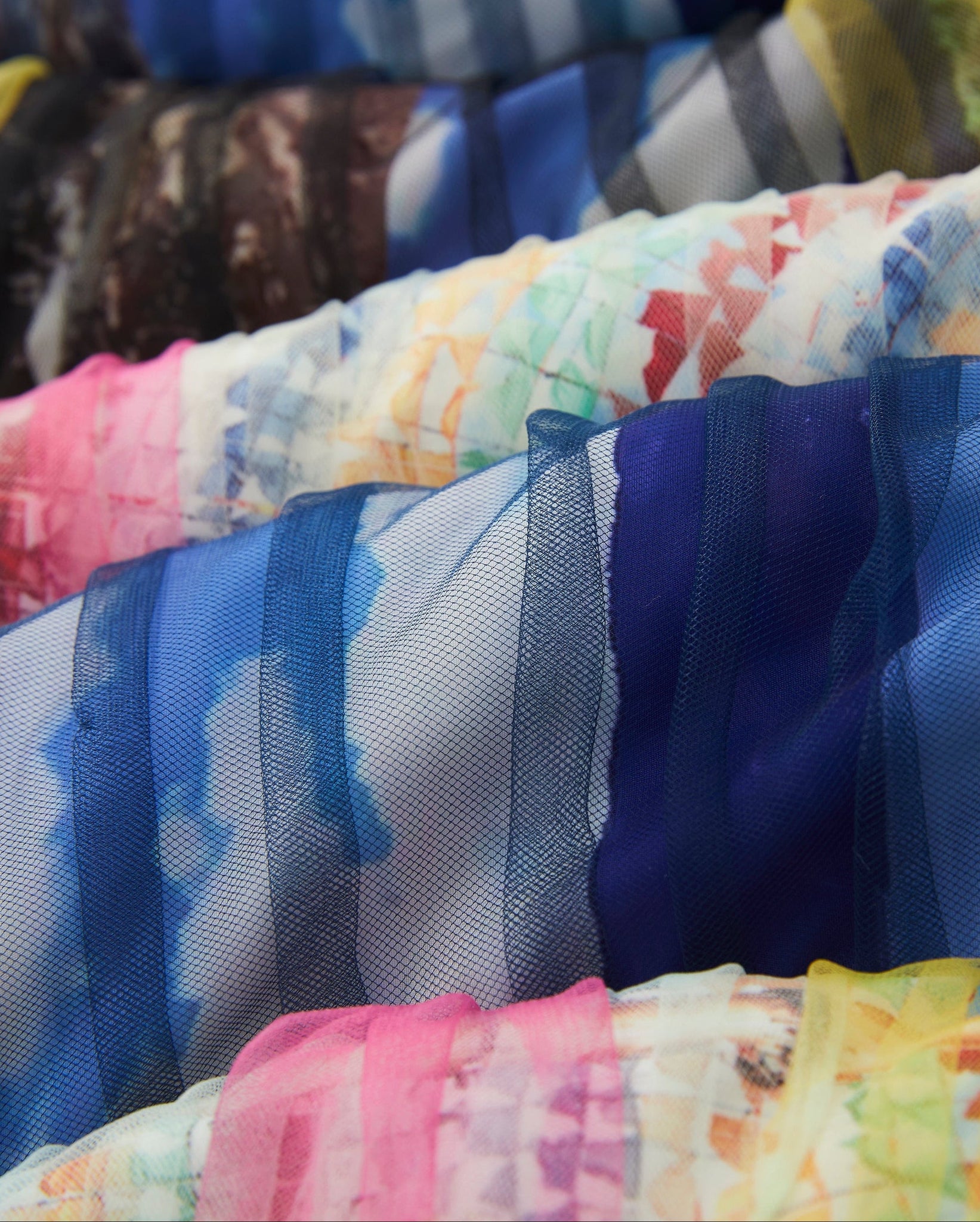 This item is made of front two-way zip, spliced 3D front, patched shangri-la print with mesh, straight hem. Made in love.